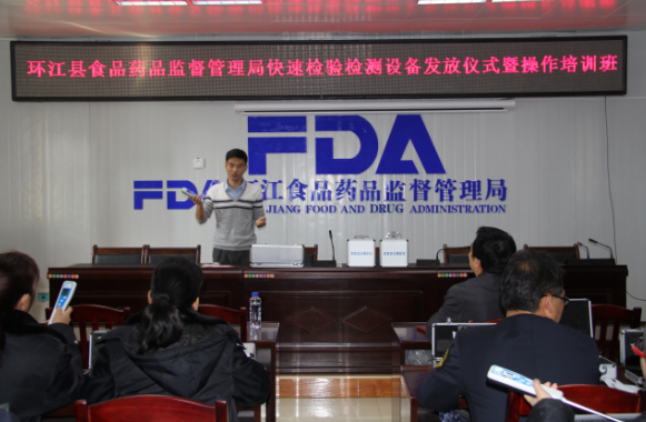 今日,環江(jiāng)縣食品(pǐn)藥品監督管理局邀請北(běi)京普讚生物(wù)技術有限公司快檢設備技術(shù)專家(jiā),采取理論(lùn)講解與現場演示相結(jié)合的方式,以快檢設備操作要點及注意事項為重點,為參訓人(rén)員講(jiǎng)解了食品安全快檢原理、儀器操作規程等內容,並就食品中的熒光劑、食用油、二氧化硫、吊白塊和農藥殘留檢測等常用快檢操作實務進行了現場演示指導。