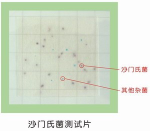 (4)結果觀察:對測試片進行觀察,呈(chéng)紫紅色的菌(jun1)落為沙門氏菌;呈藍色的菌(jun1)落為其他(tā)大腸菌,葡萄球菌不(bú)生長。![16(4)[1].jpg](/uploads/image/20170605/14966449862180.jpg)